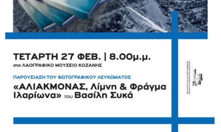 Σας προσκαλούμε στην παρουσίαση του Φωτογραφικού Λευκώματος «Αλιάκμονας, Λίμνη και Φράγμα Ιλαρίωνα» του Βασίλη Συκά, την Τετάρτη 27 Φεβρουαρίου και ώρα 8μ.μ....